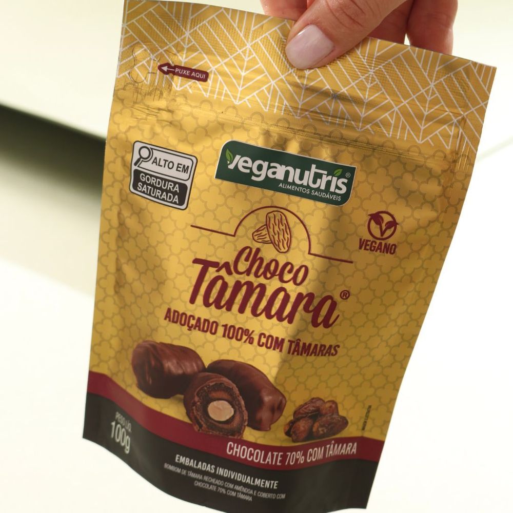 Desfrute da combinação perfeita de sabor e saúde com a Chocotâmara Veganutris, uma opção vegana, sem glúten e sem adição de açúcar.
