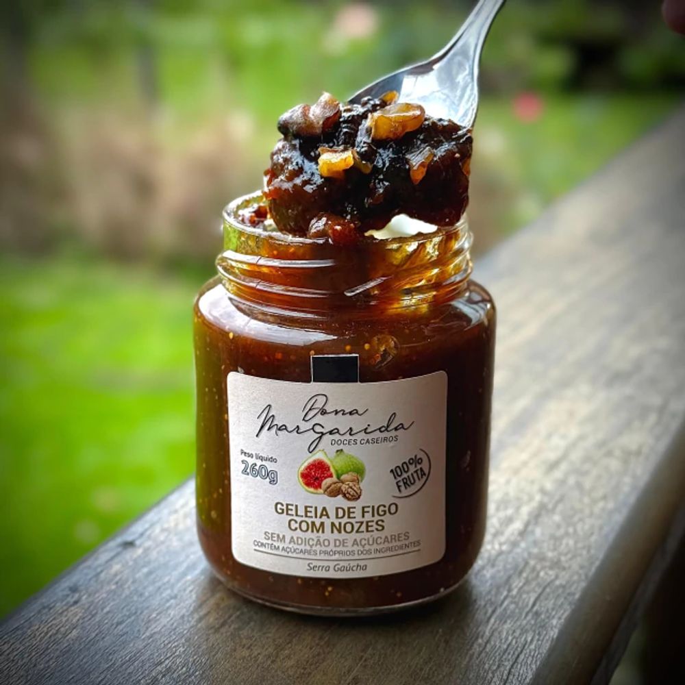 Delicie-se com a Geleia de Figo com Nozes sem açúcar D. Margarida, uma opção saudável e saborosa para o seu dia a dia.