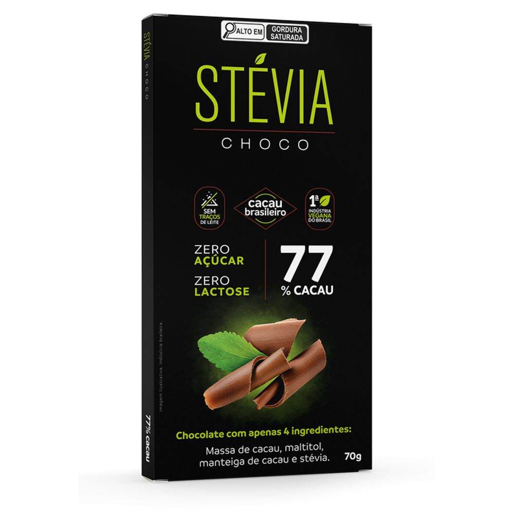 Descubra o sabor intenso e a qualidade superior do SteviaChoco 77% cacau, a escolha perfeita para quem busca um chocolate delicioso e totalmente zero leite.